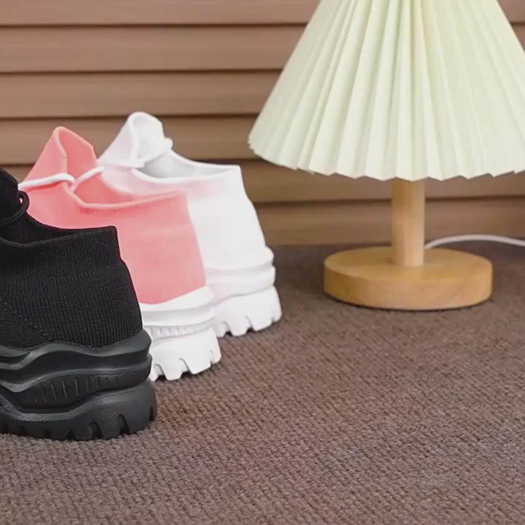 Our sneakers feature a breathable, stretch-knit upper for a soft, sock-like feel; an ultra-light EVA midsole that cushions every step; a memory-foam footbed for all-day comfort; and a flexible, grippy outsole for confident traction. The lace-up design provides a secure, adjustable fit, while the easy-care finish wipes clean and air-dries quickly. Style-ready, they pair with scrubs, leggings, jeans, or casual dresses. Fit: true to size—if you’re between sizes or have wider feet, consider sizing up.